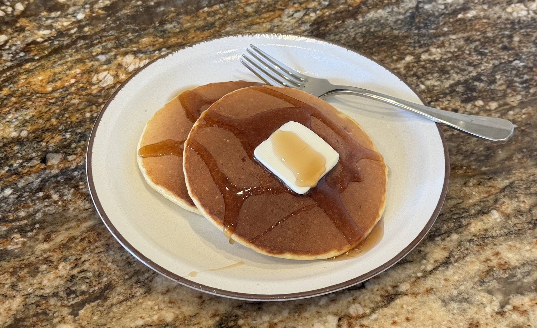 To make a pancake, put about ¼ cup batter into the center of the pan. (Use a ⅓ cup measure to pour quickly without having to scrape down the sides.)